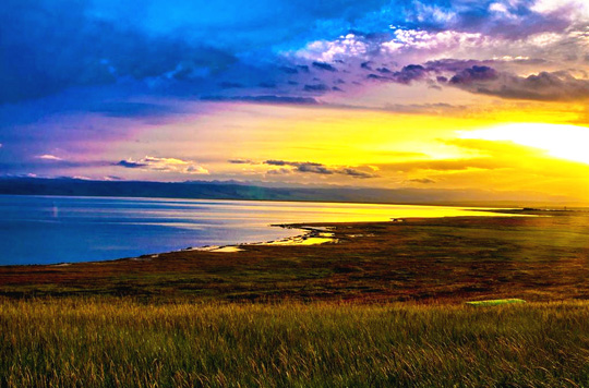 青海湖畔暮色
